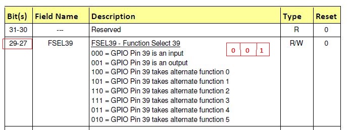 GPIO Function SElect 1 . 처음 0번지에서 1떨어져 있으므로